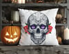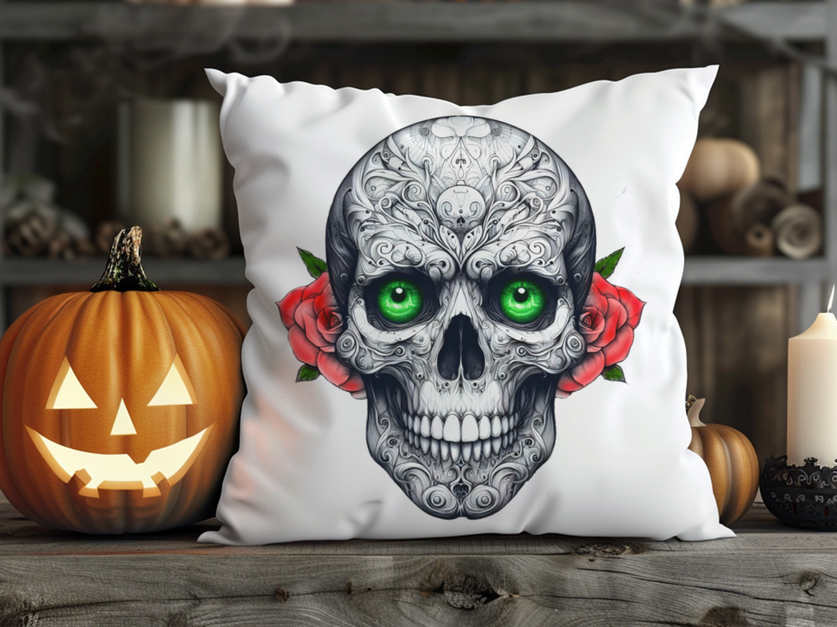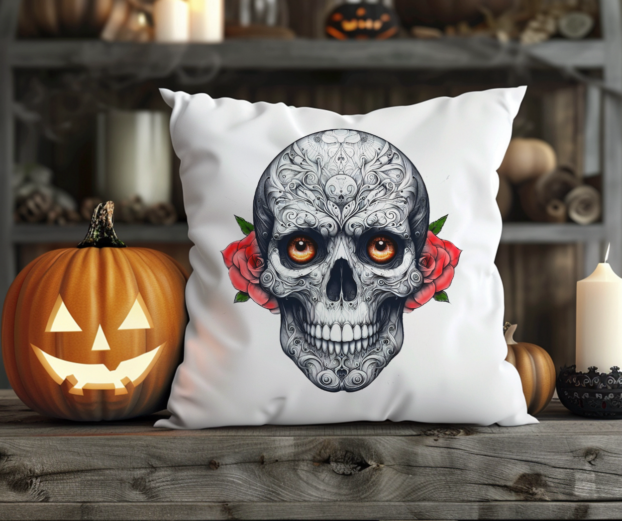Set of 5 tattoo style skulls, violet, orange, brown, blue, green eyes. High quality PNG, digital download. Sublimation or print. Halloween. Highly detailed. Designed on 12 x 12" canvas so suitable for clothing, canvas, bags etc, and can be downsized for smaller projects. Sublimation, print or DTF