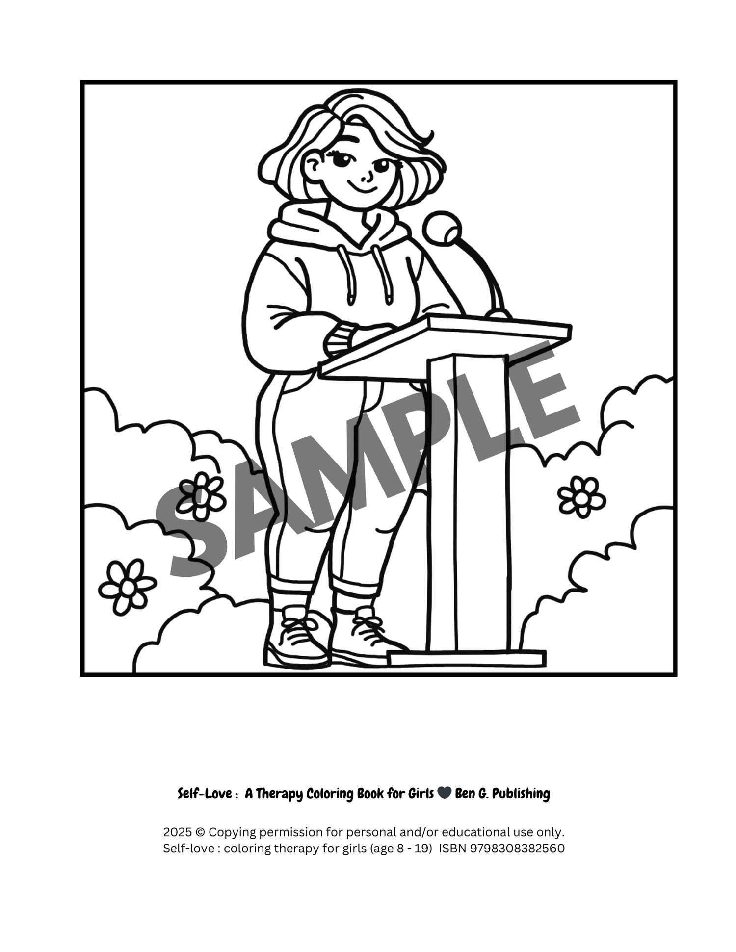 "Self-Love: A Therapy Coloring Book for Girls" is a carefully designed collection of hand-drawn, empowering illustrations and affirmations that inspire self-care, build confidence, and celebrate individuality, diversity, and inclusion. Created by a veteran teacher to support social emotional learning (SEL), this coloring book encourages girls to embrace their uniqueness, develop positive habits, and nurture emotional well-being through creative expression and mindfulness. Perfect for fostering self-love, body positivity, confidence, and joy one colorful page at a time! This book celebrates the wonderful diversity of our world.