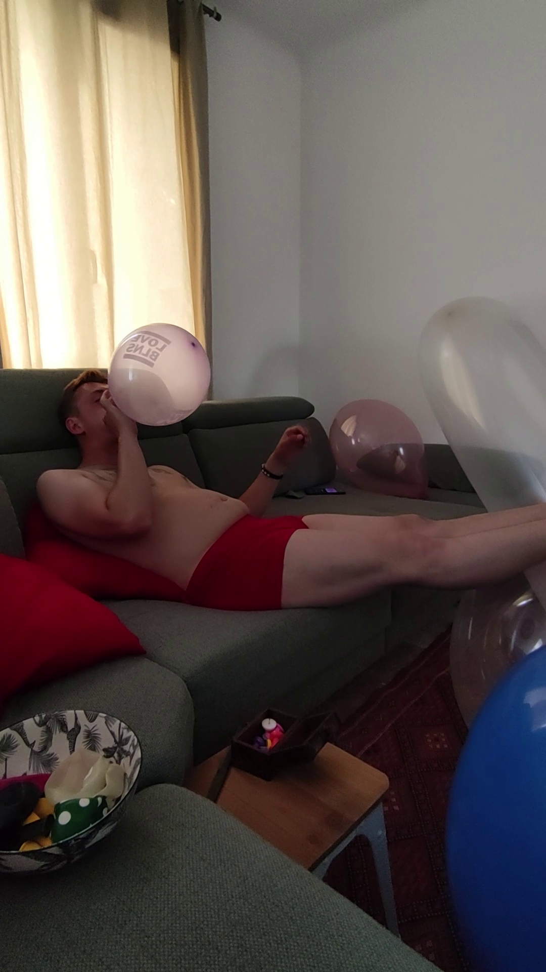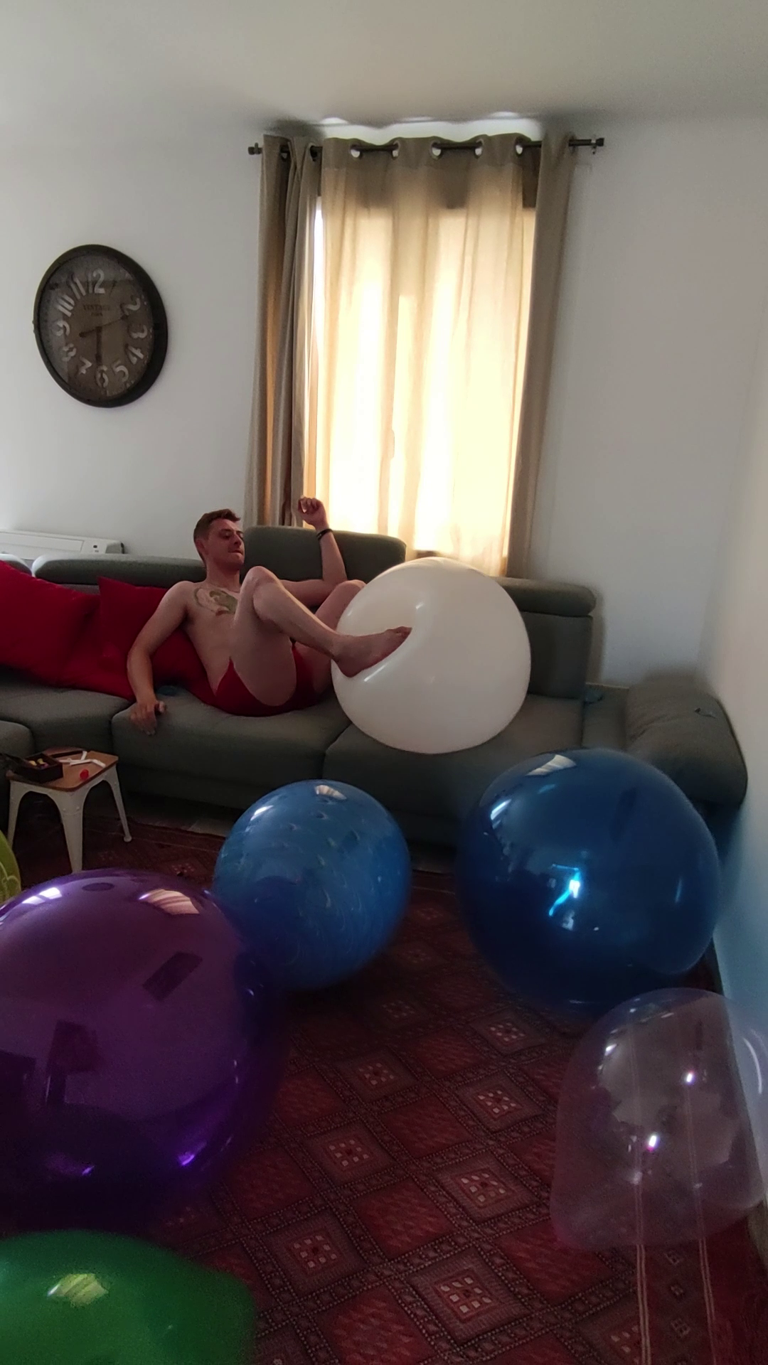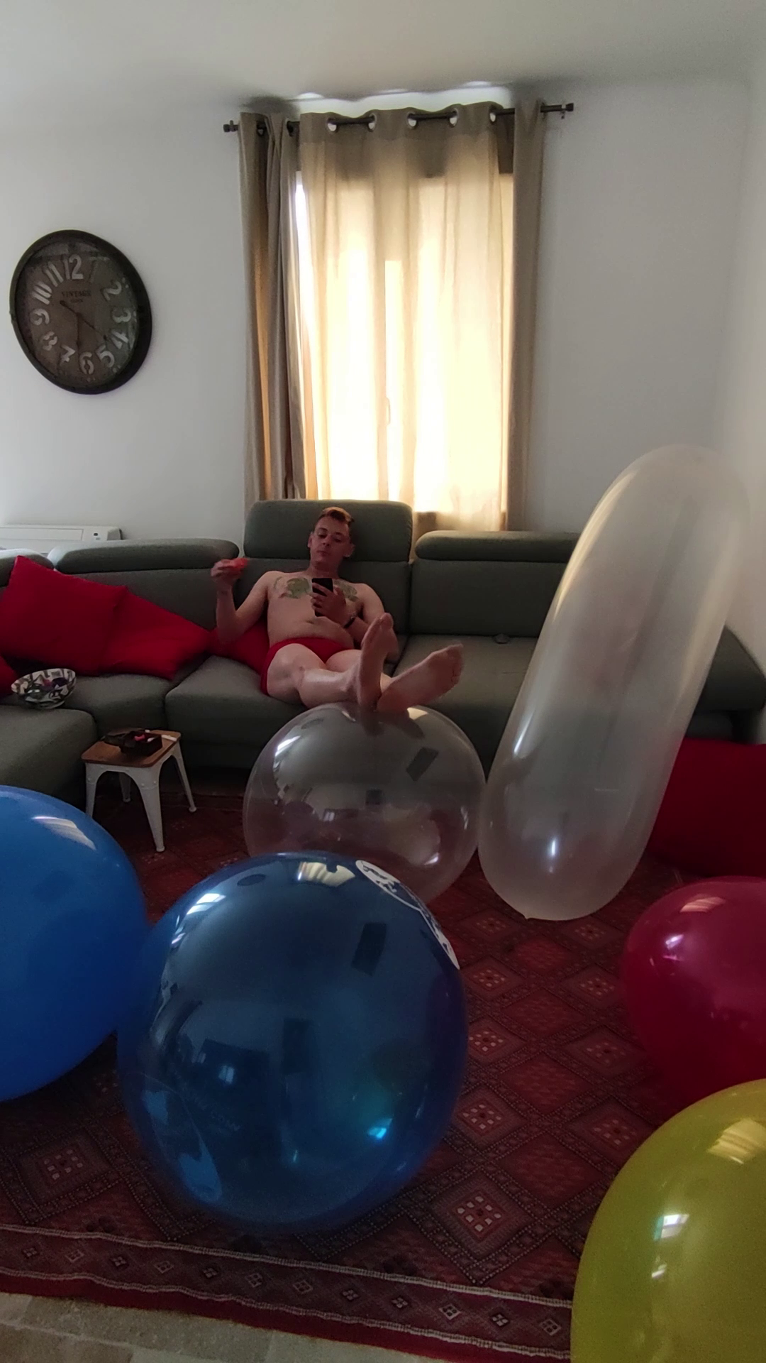 In this video Nicolas have a lot of balloons to burst. Small ones and giant ones.