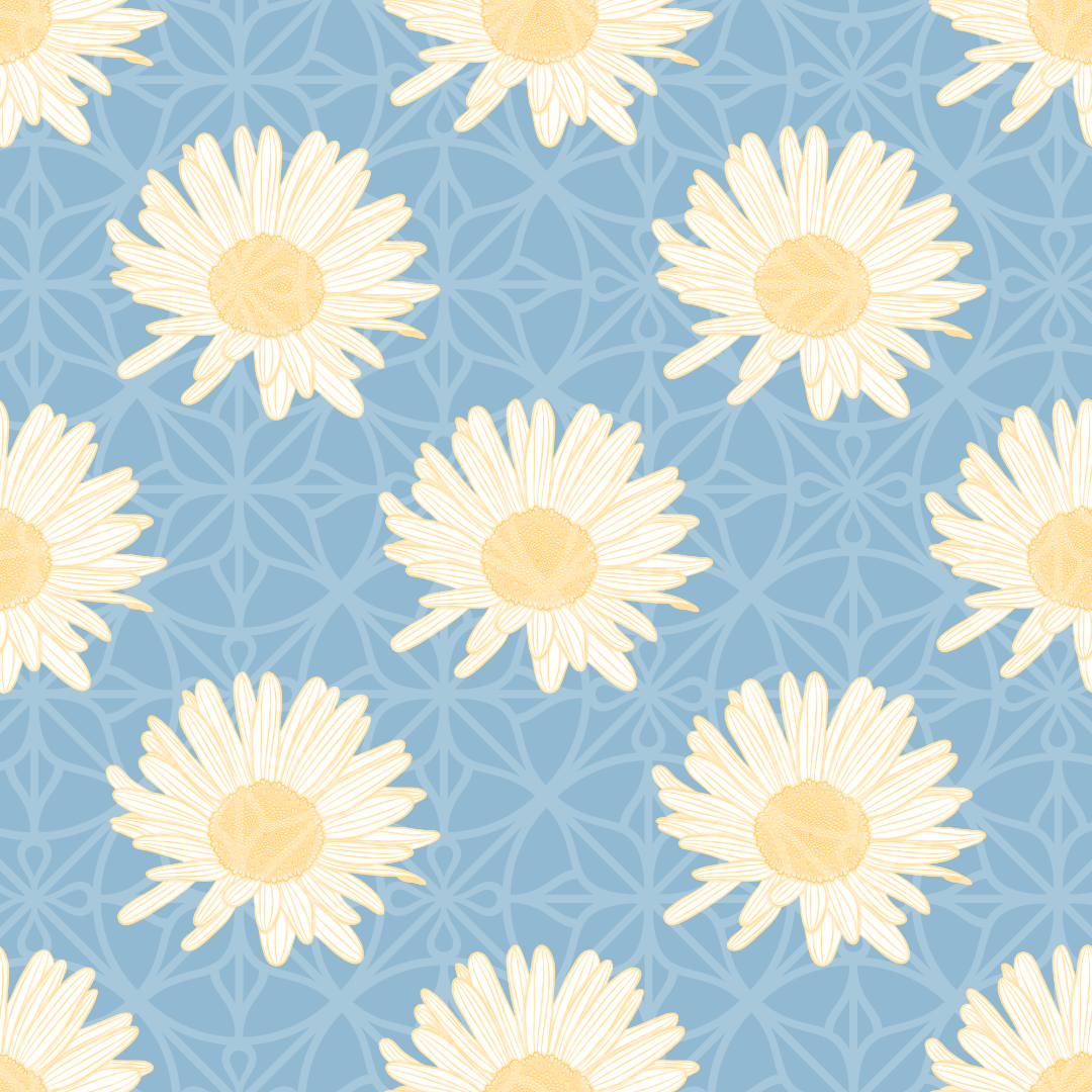 Vector White and Yellow Daisy Repeating Pattern