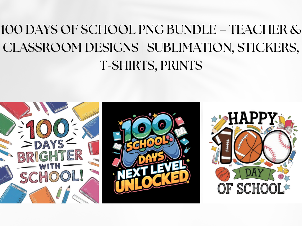 100 Days of School PNG Bundle – Teacher & Classroom Designs | Sublimation, Stickers, T-Shirts, Prints