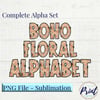 Boho Floral Block Doodle Alphabet PNG Digital Download