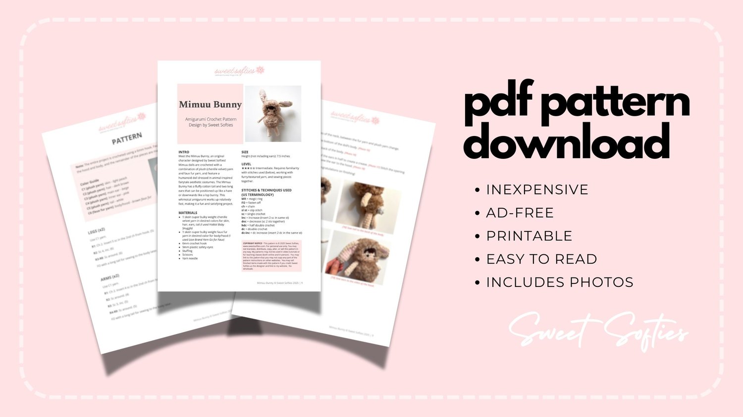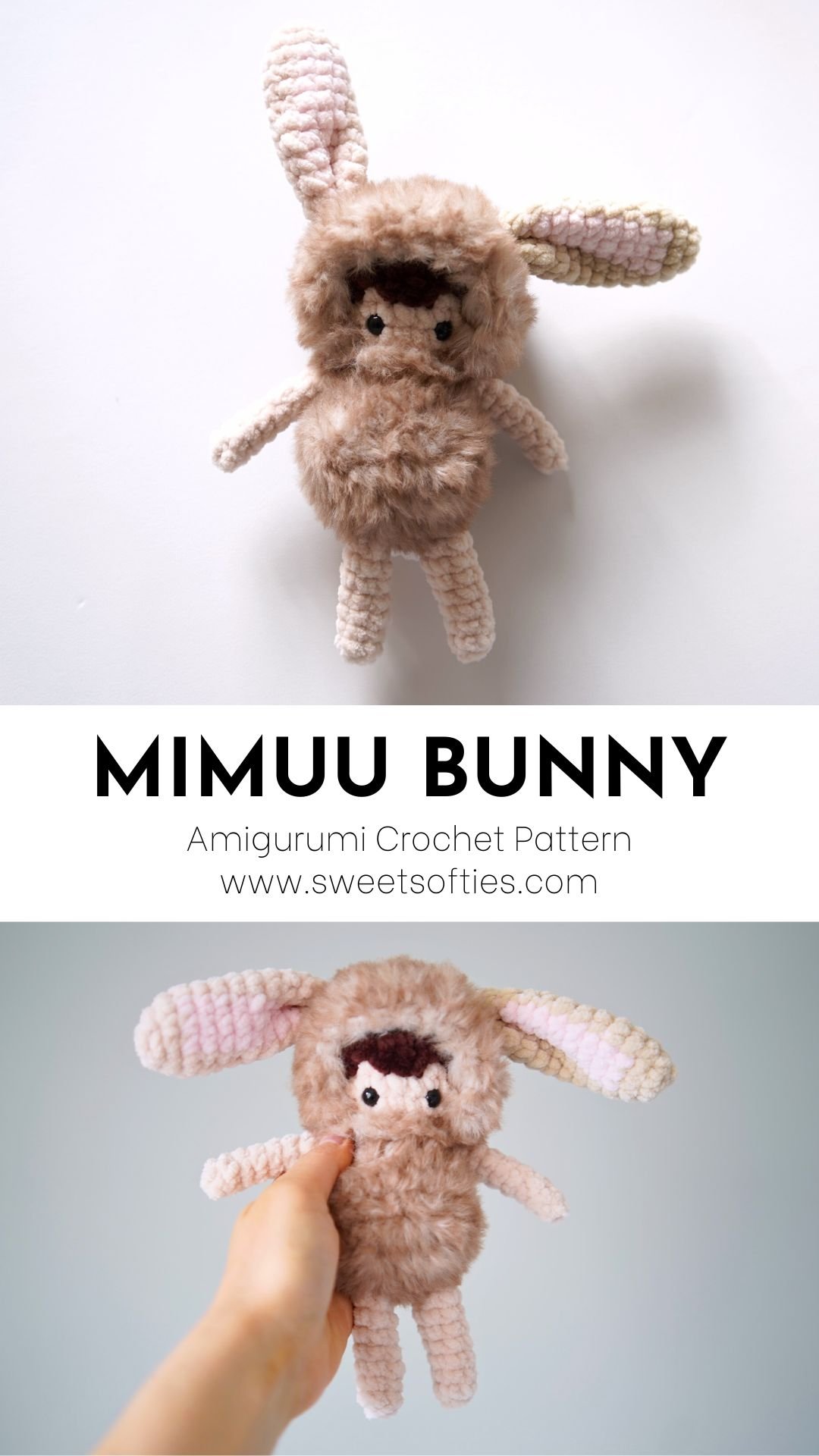 Free pattern viewable at: https://www.sweetsofties.com/2025/10/mimuu-bunny.html