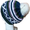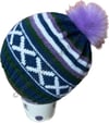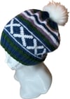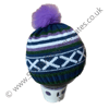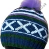 Usually, I encourage choosing your own colors to knit my designs, but to retain the Scottish nature of this hat MC should always be blue and CC1 should always be white. There is more freedom with CC2 and CC3; for CC2 I chose green to represent the countryside, it’s also a popular color in tartans. For CC3 I chose purple to represent the Scottish thistle (the Flower of Scotland). You could also use red or yellow for CC2 or CC3, as they are other colors often seen in tartans.To make fraternal rather than matching hats choose different colors for CC2 and/or CC3. For example, for my second hat I used red for CC3 instead of purple.