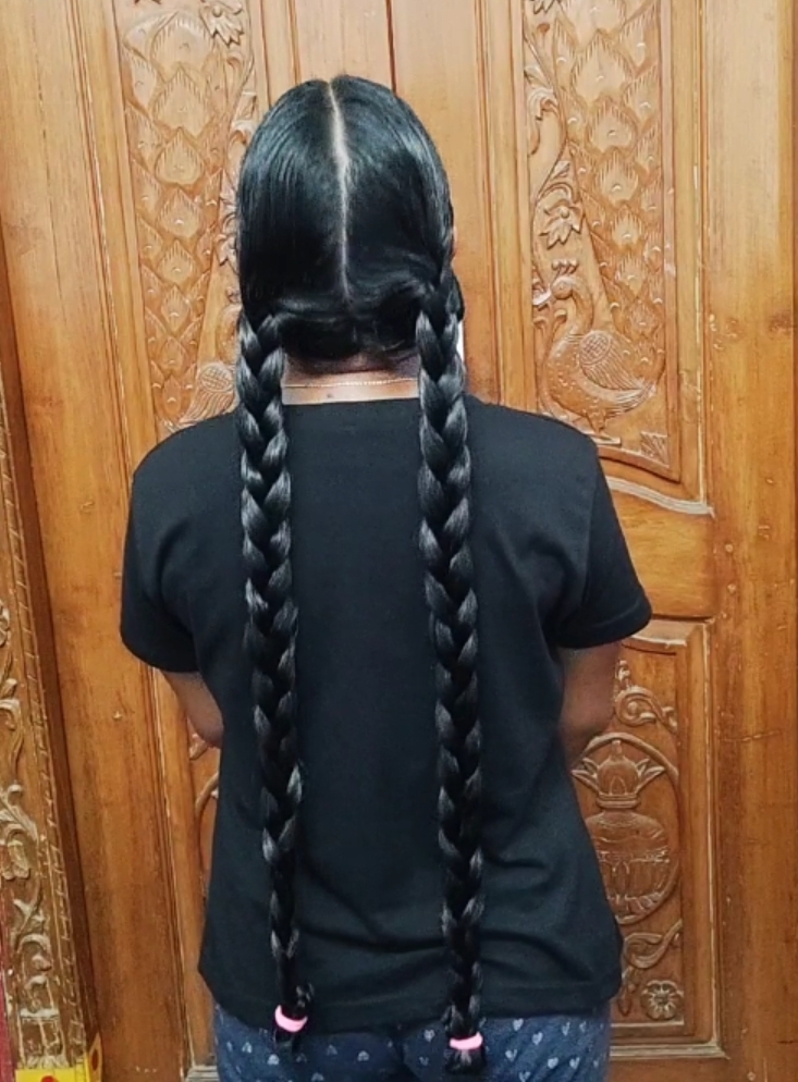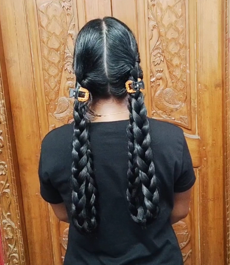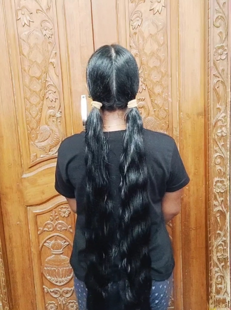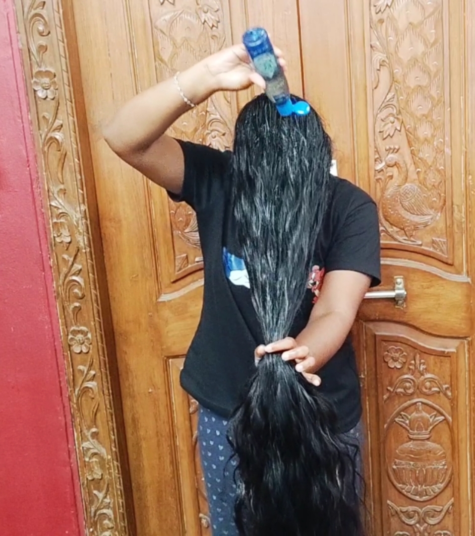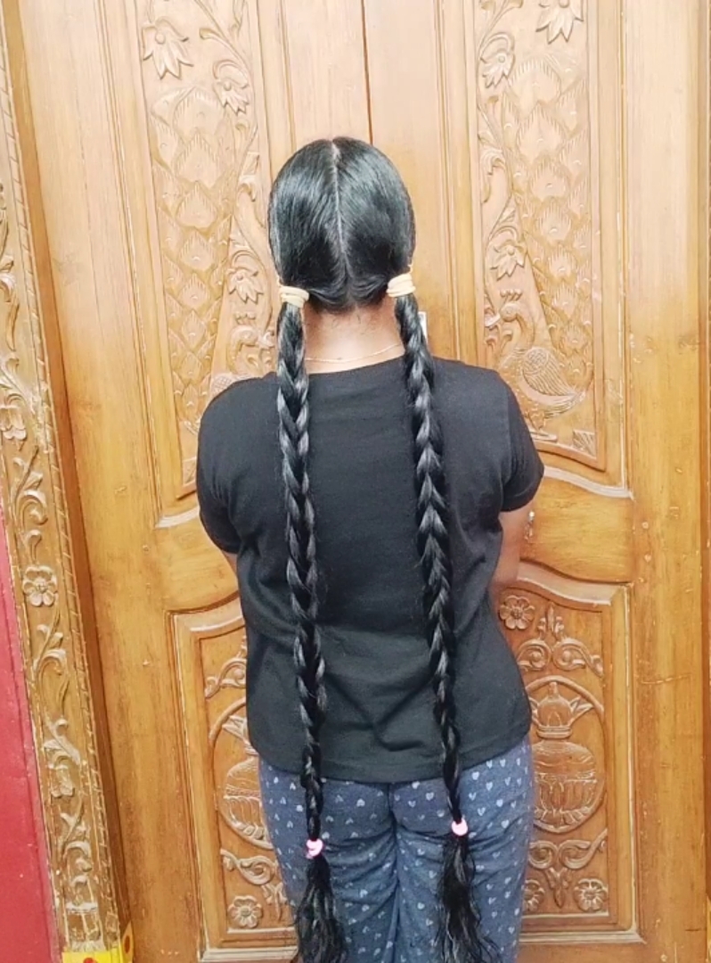 Oiling hair and combing front facing 9 twinbraids #hairstyles #longhair