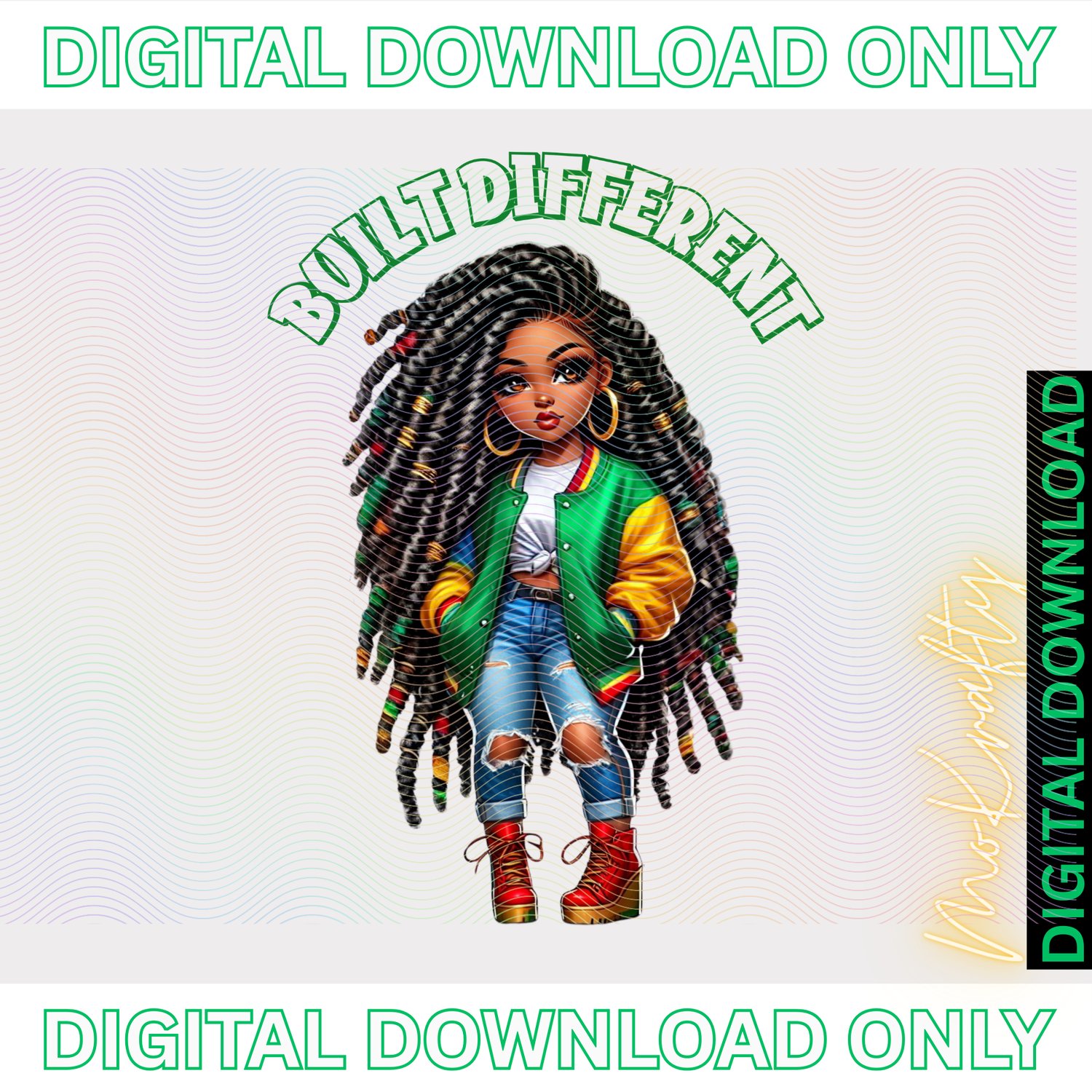 Step into bold, confident, unapologetic style with the Built Different Baddie PNG Bundle! This bundle includes 5 unique Afro-glam baddie characters dressed in varsity jackets, ripped jeans, and statement boots. Perfect for creators, crafters, and small businesses making apparel, tumblers, stickers, and more.