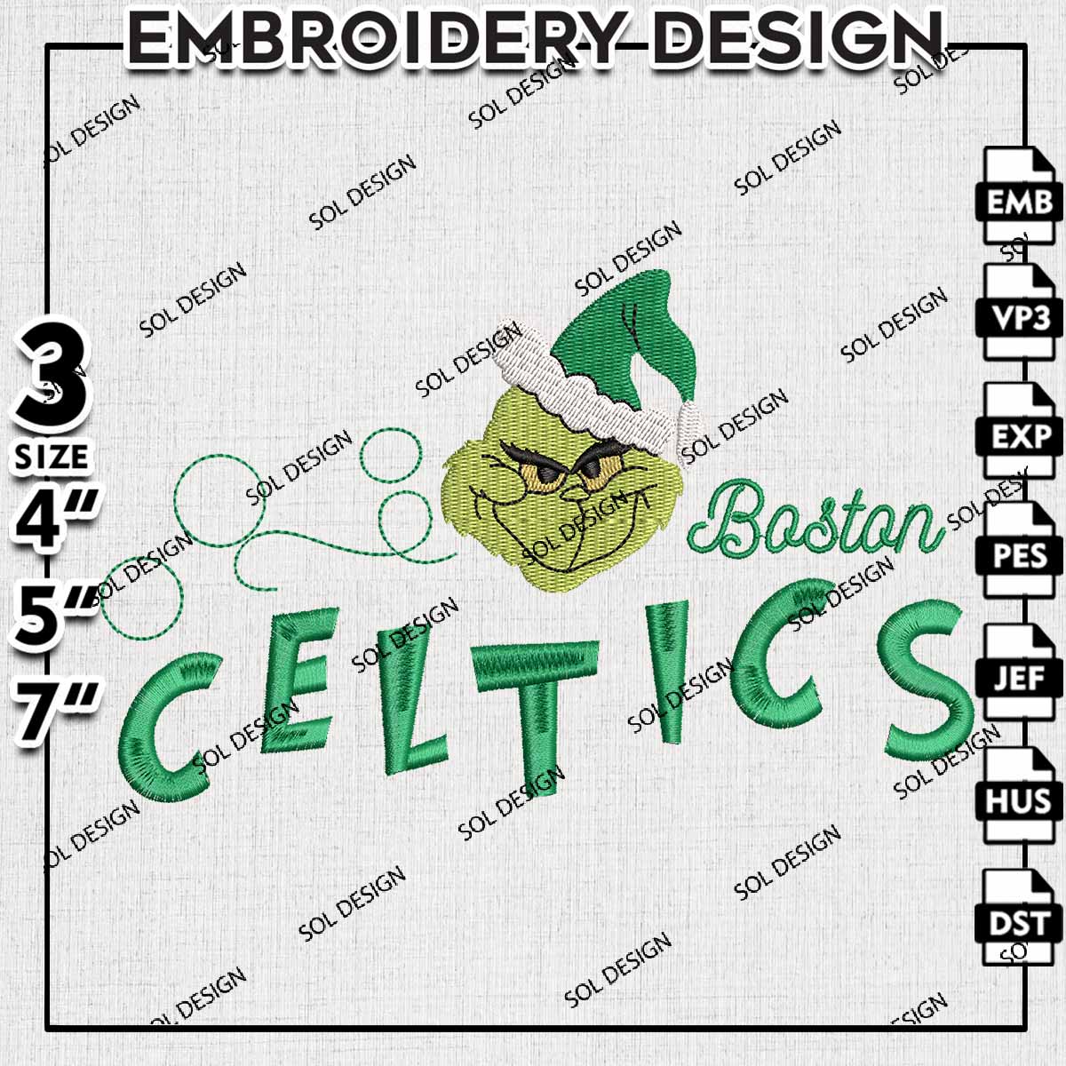 Christmas Grinch Face x Boston Celtics NBA Basketball Team Embroidery Designs, Grinch Embroidery Files, NBA Celtics Basketball Team Logo Embroidery, Merry Christmas Machine Embroidery Design, Digital Download