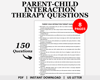Designed to enhance client engagement and drive positive change, this therapy resource offers a collection of parent-child interaction therapy questions. Tailored to the principles of parenting therapy, these therapy questions will guide your sessions towards productive conversations and transformative outcomes. These parent-child interaction questions are made to elicit insightful responses and encourage clients to explore their goals and aspirations.