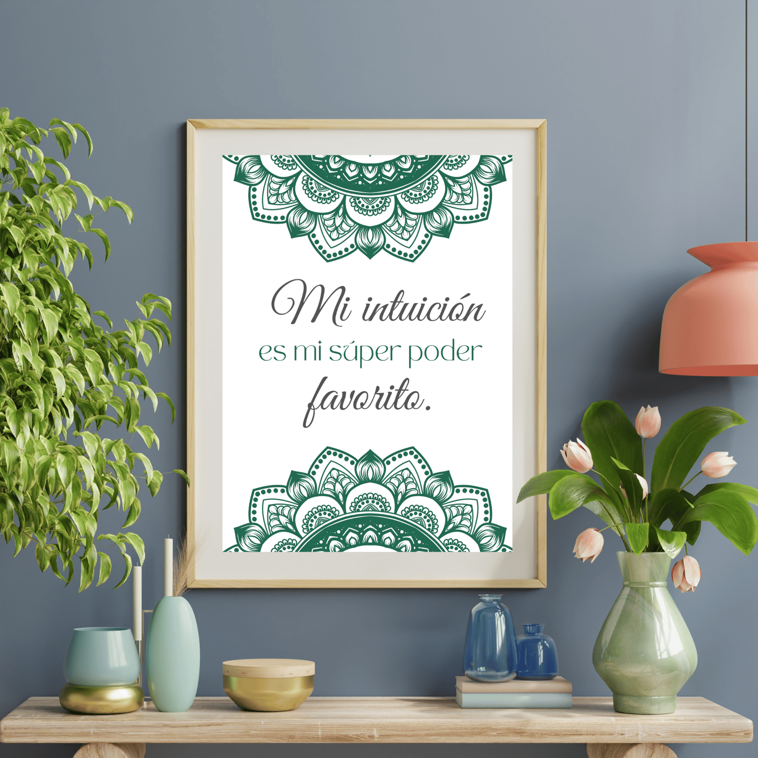 Desbloquea lo extraordinario que hay en ti con el poder de la intuición. Confía en tu brújula interior, porque ella conoce el camino. En un mundo lleno de ruido, tu intuición es tu superpoder, un faro de claridad y verdad. Deja que este cautivador póster te recuerde a diario que dentro de ti hay un manantial de sabiduría e intuición, listo para desencadenar milagros y revelar lo extraordinario. Abraza la magia interior y deja que tu intuición vuele.