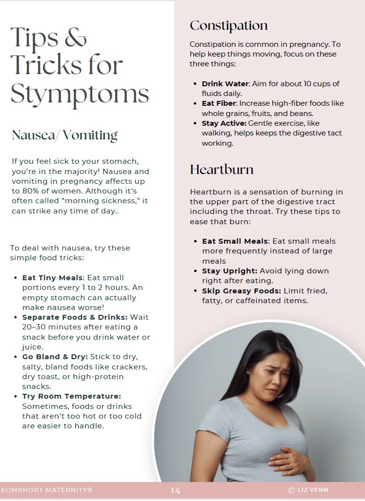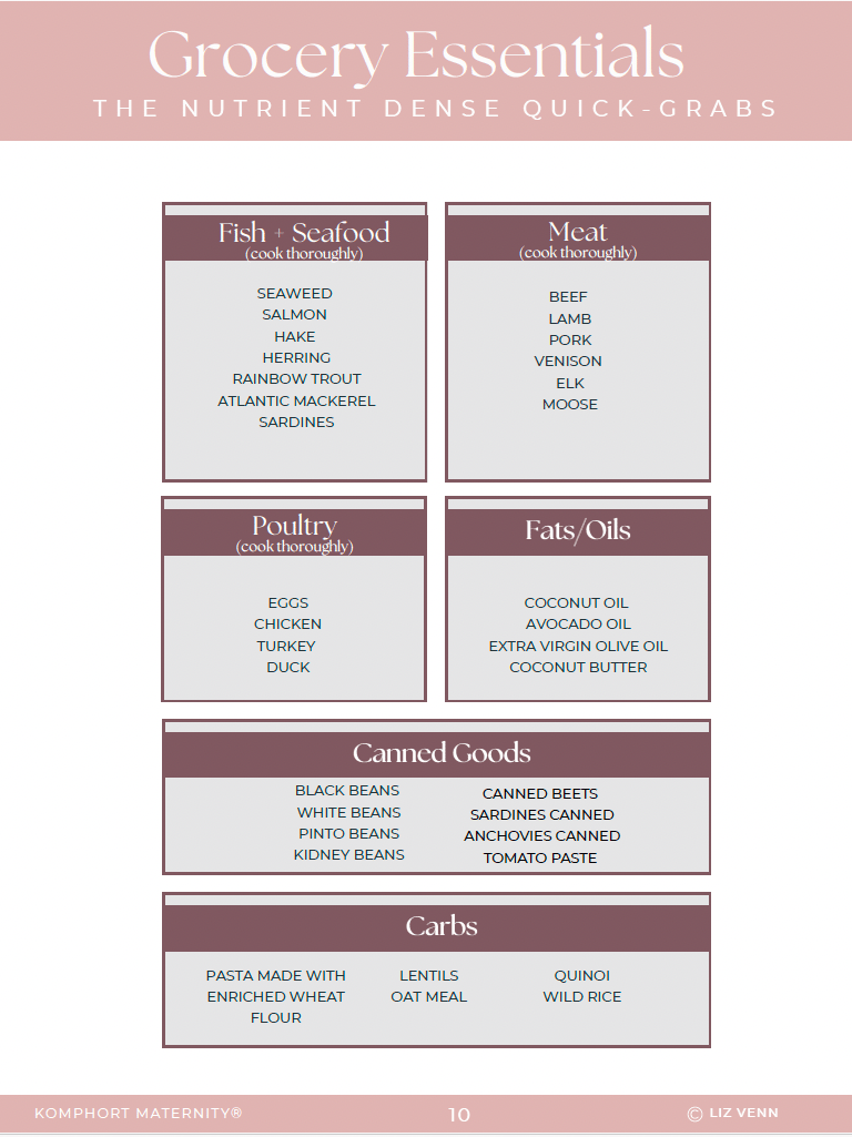 I’m Liz, a Registered Nurse and Kinesiologist, certified as a Birth & Postpartum Doula, Childbirth Educator, and Breastfeeding Specialist, and the founder of Komphort Maternity. This guide was created alongside a Registered Nutritionist and Dietitian with both clinical and one-on-one coaching experience to ensure it’s evidence-based and practical.