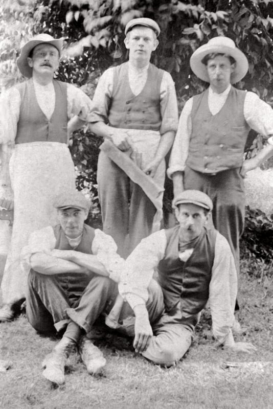 Walter Parker (standing at the centre) as an apprentice working for the Smith Brothers of Thorney, c1902.
