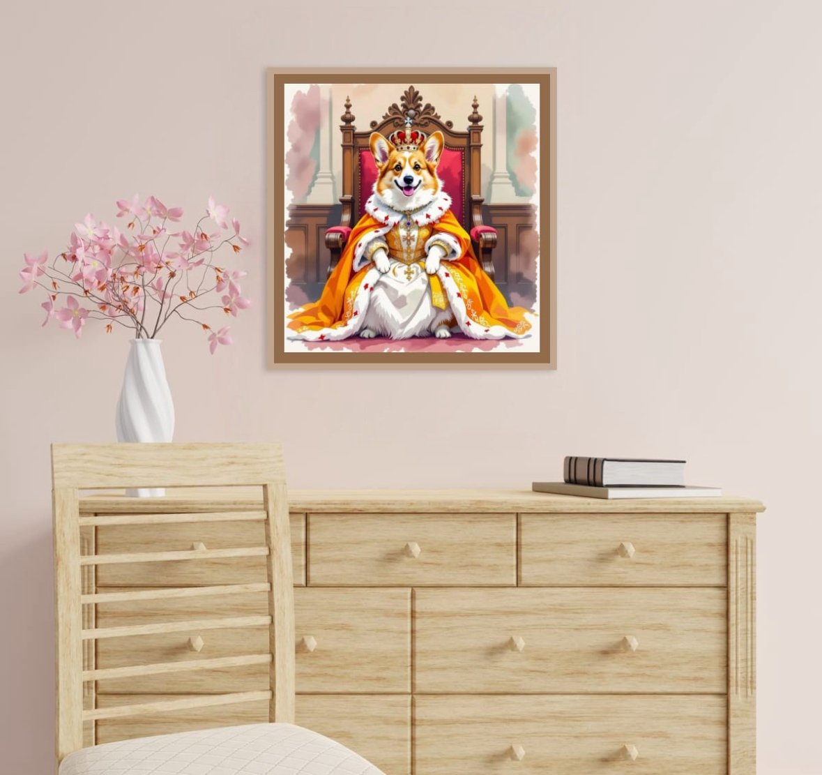 Bring a touch of royal charm into your home with this delightful artwork, “Corgi as Queen Royal in her Coronation.” 🐶👑