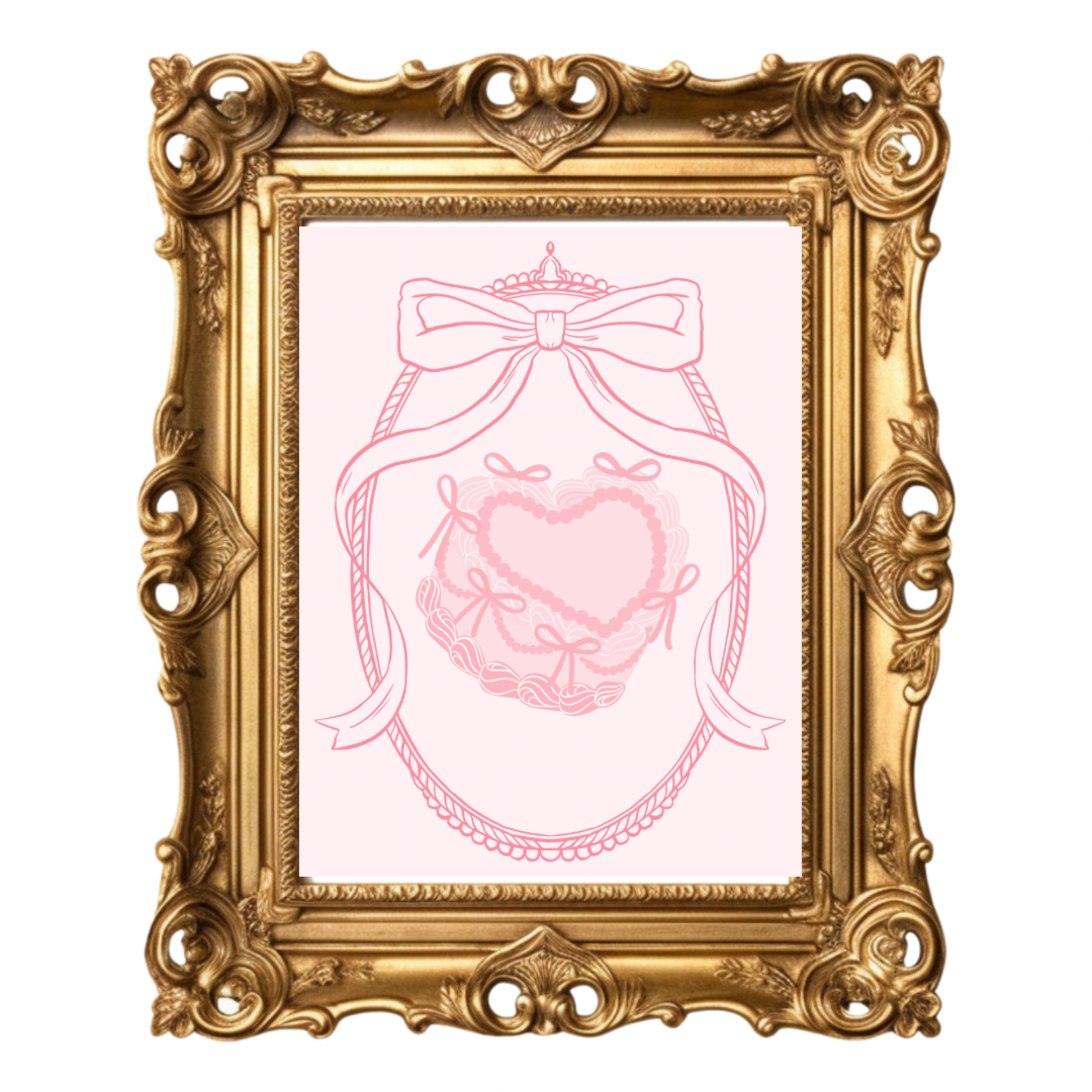 Vintage bow heart cake (pink and white)
