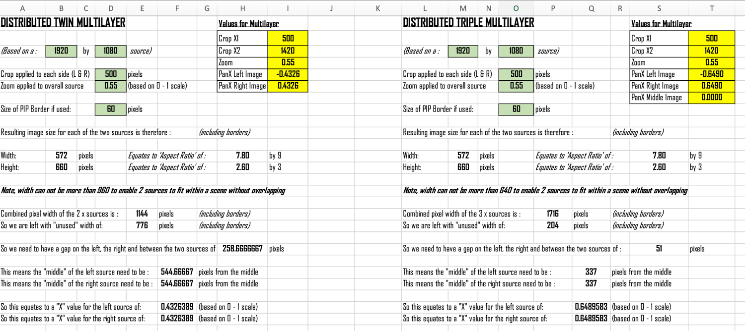 vMix Spreadsheet to calculate layer position for even distribution of twin or triple PIPs