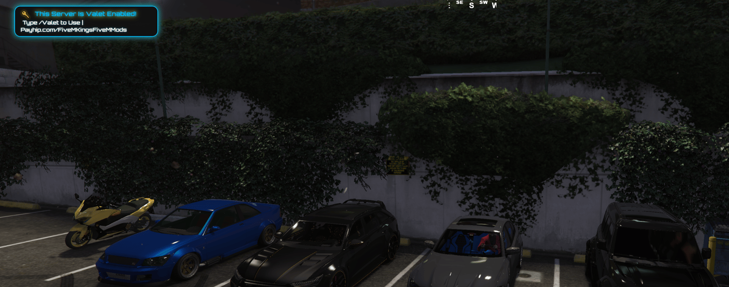 - Looks and feels AAA: Futuristic neon interface + subtle watermark (“This Server Is Valet Enabled”).