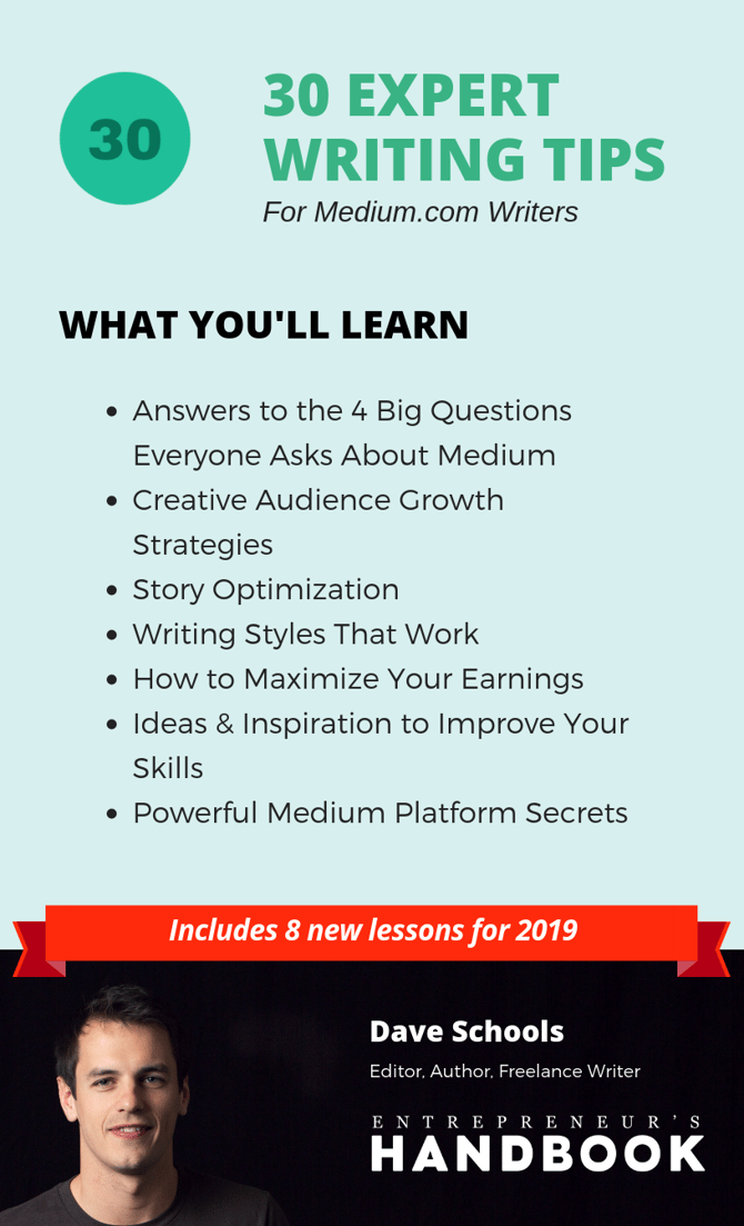 "I've taken several other courses, coaching, and webinars but this was definitely the most helpful. Dave does a great job showing you what's worked on Medium and the step-by-step process to help you replicate success. Plus, his sections about pitching editors, landing big publications and creating epic headlines are worth the money alone. This guide will show you everything you need to gain a massive following and start making money with Medium."