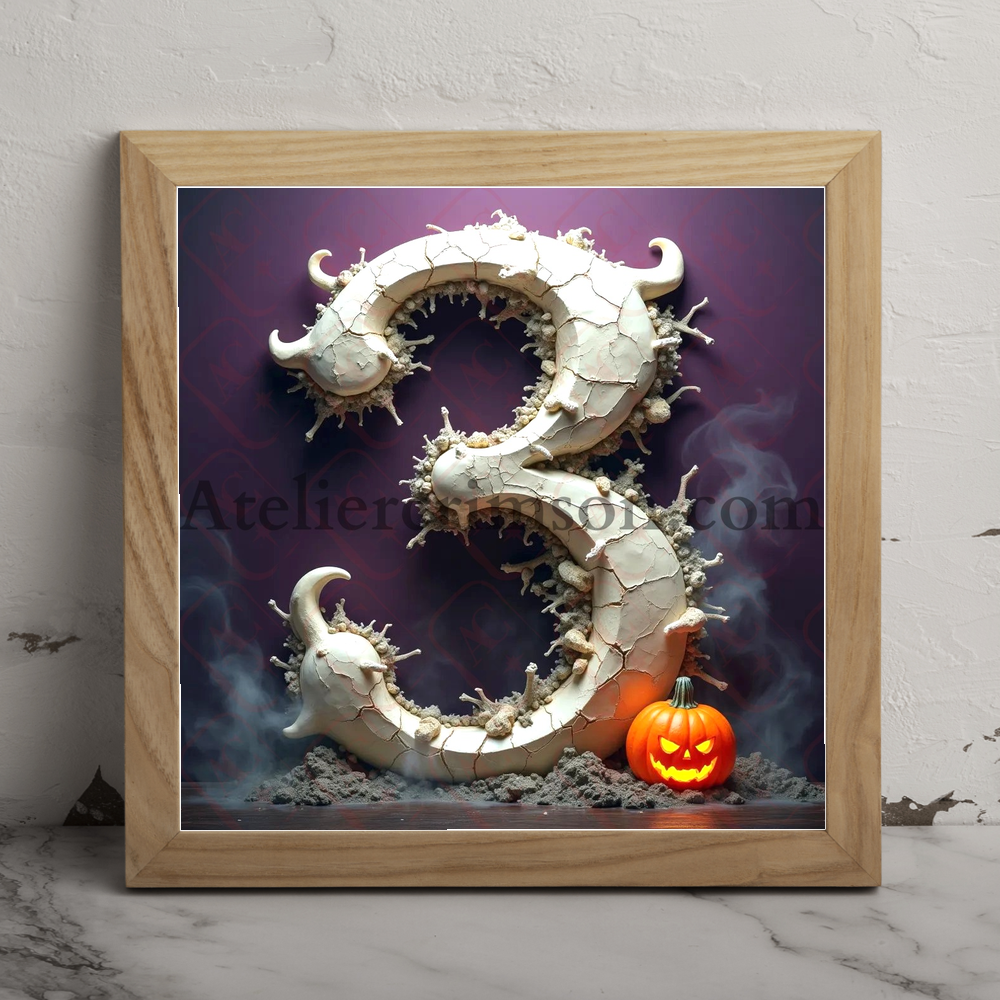 Number 3 spooky character skull Halloween Discover our Spooky Skull Alphabet! Each character is a 3D masterpiece of bone and shadow. Perfect for Halloween designs, gothic projects, or unique wall art. 💀✨ Click to download this high-resolution character and elevate your creations with haunting elegance!