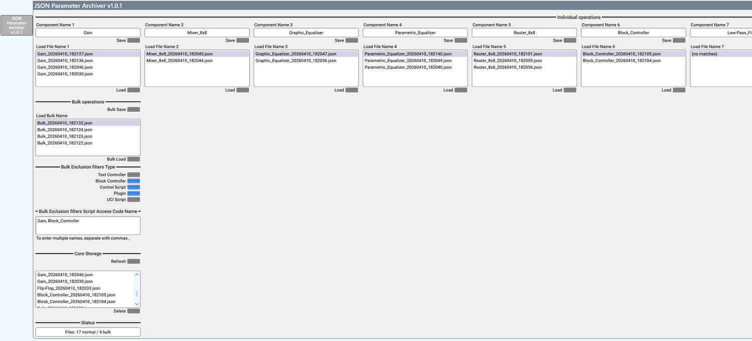 Q-SYS plugin JSON Parameter Archiver v1.0.1