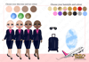 three different skin tones, three eye colours and 10 hair colours)