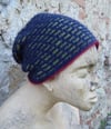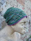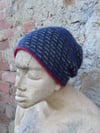 Askew is a beanie, to which you can add extra slouch. It uses slipped stitches and changes in the stitch pattern to create a textured pattern that spirals around the hat. You have the option of a plain edge to the brim, a contrast edge or a rolled edge.Sizes