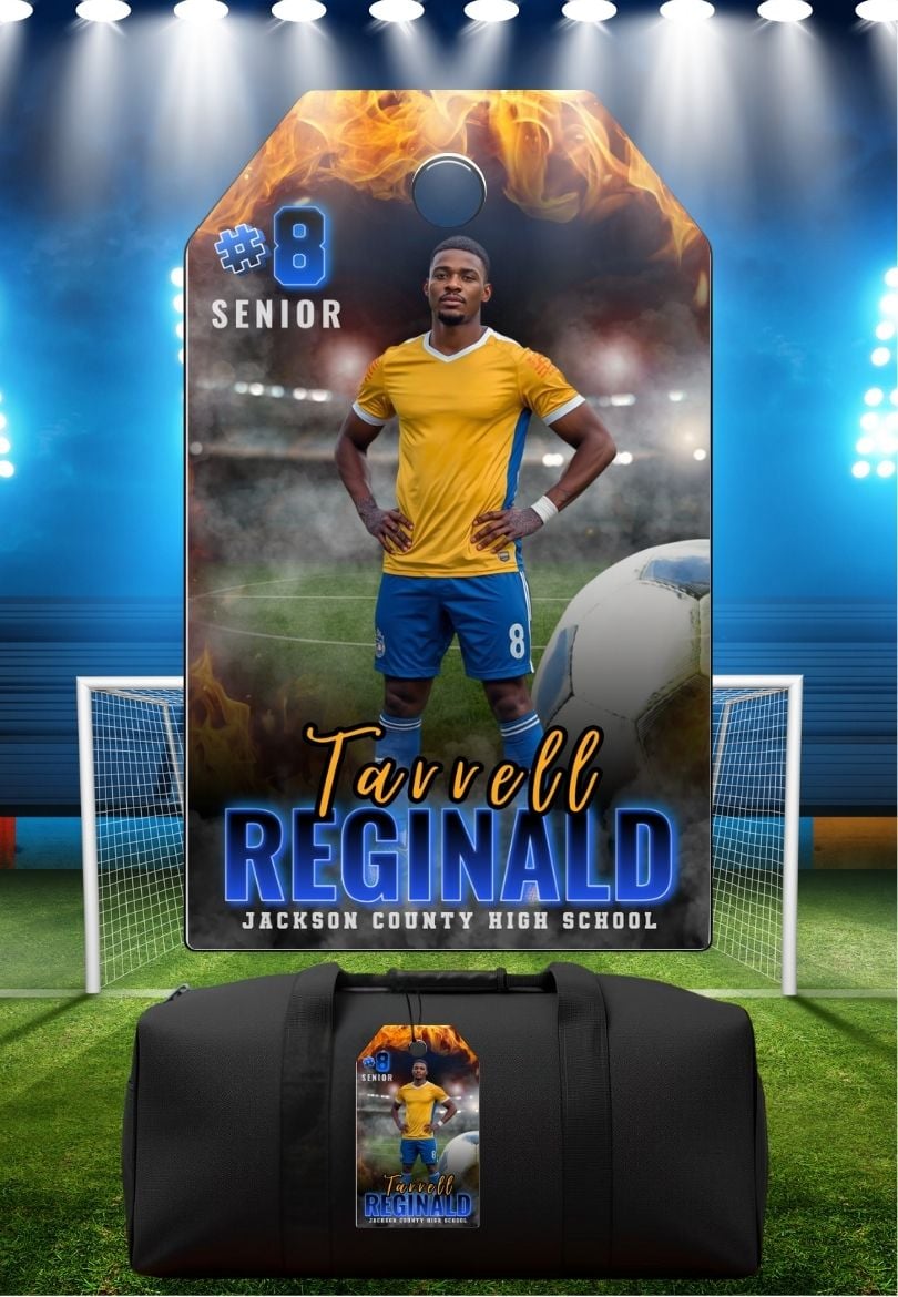 Score big style points with this dynamic soccer bag tag template, designed to make every player’s gear look game-day ready! Make every bag stand out from the crowd — this tag doesn’t just show their name, it shows their passion for the game. Perfect for players who leave it all on the field and want their gear to represent that same energy!