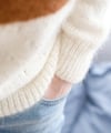 Caramel Vanilla is a relaxed, raglan sleeved sweater with simple Eyelet pattern on lower body.