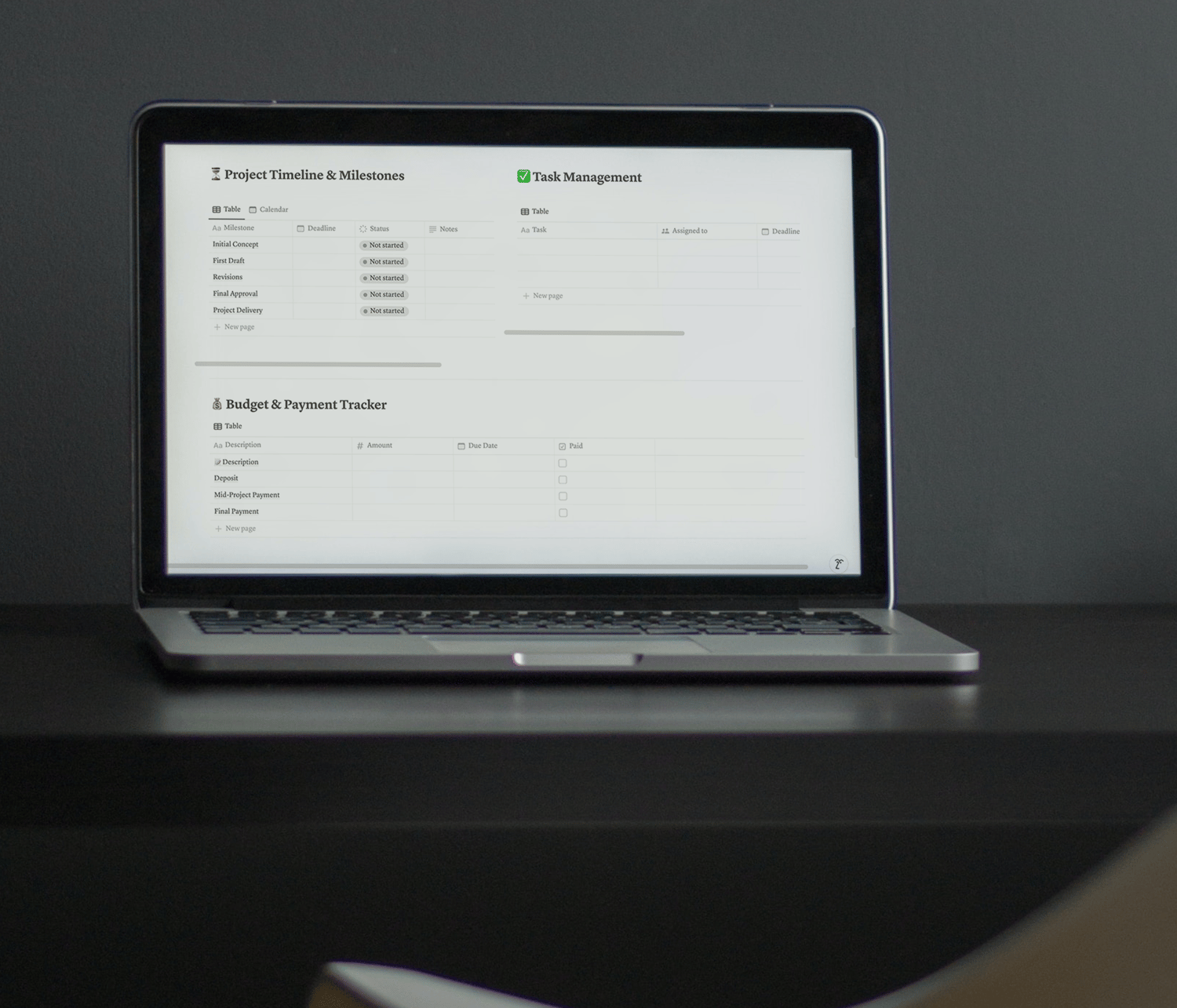 Use this project & client management tracker to keep track of your current works! You'll get a Notion template which you can easily duplicate to your workspace. You can find the link in the PDF file!