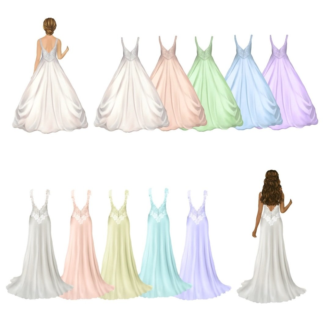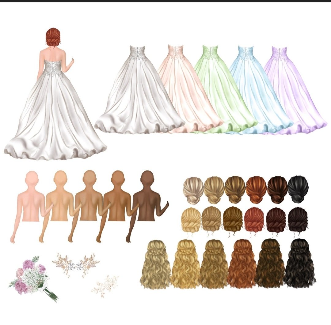 Build your own wedding clip art with a load different options of wedding dress, hair colour and so on