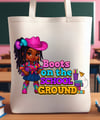 It’s a back to school takeover with this “Boots on the School Ground” PNG! Featuring a stylish Black girl in a pink glitter cowgirl hat and colorful boots, this playful, bold design is perfect for shirts, stickers, and party favors for the little boss babe ready to take the school ground by storm. Yeehaw and slay, sis!