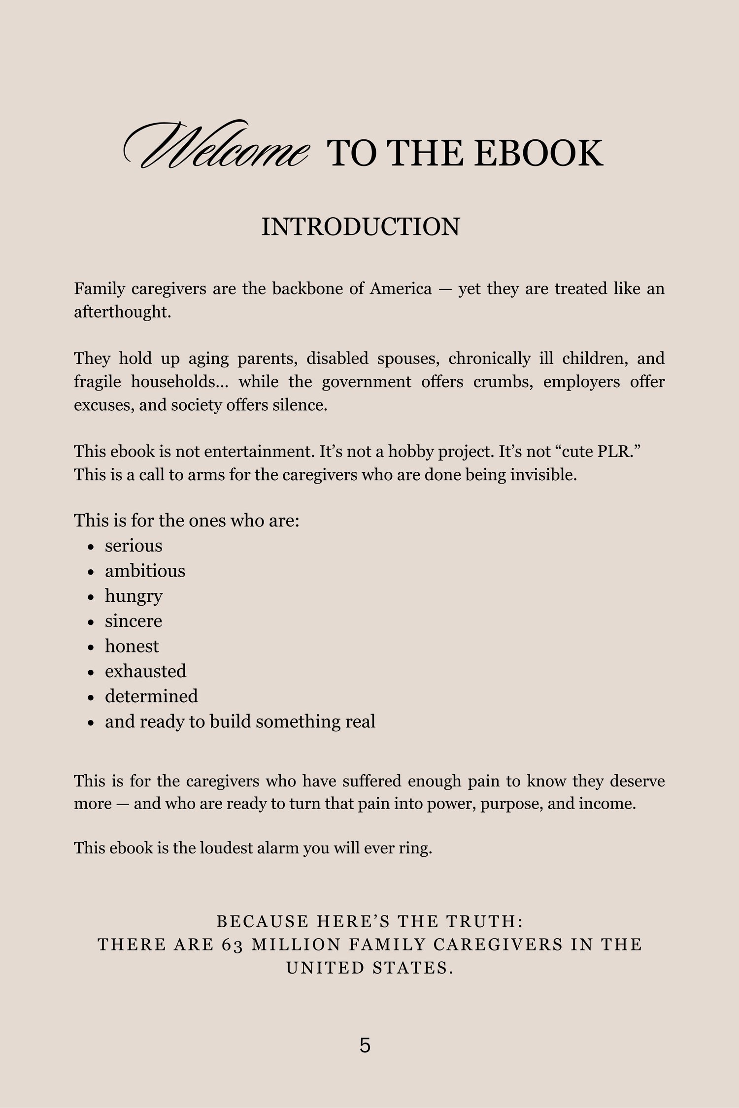 This ebook is for caregivers who are serious, ambitious, exhausted, determined, and ready to build something real.