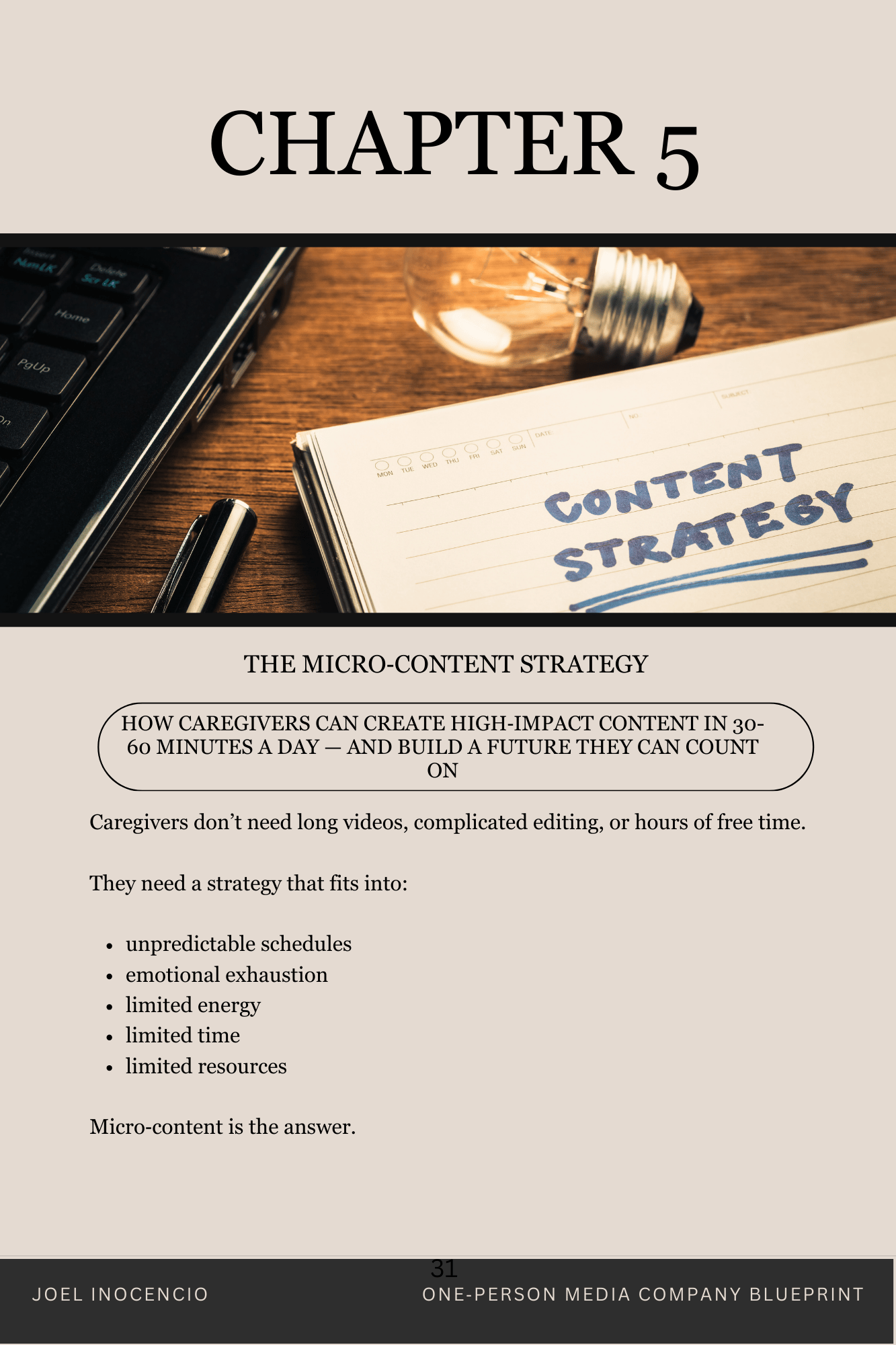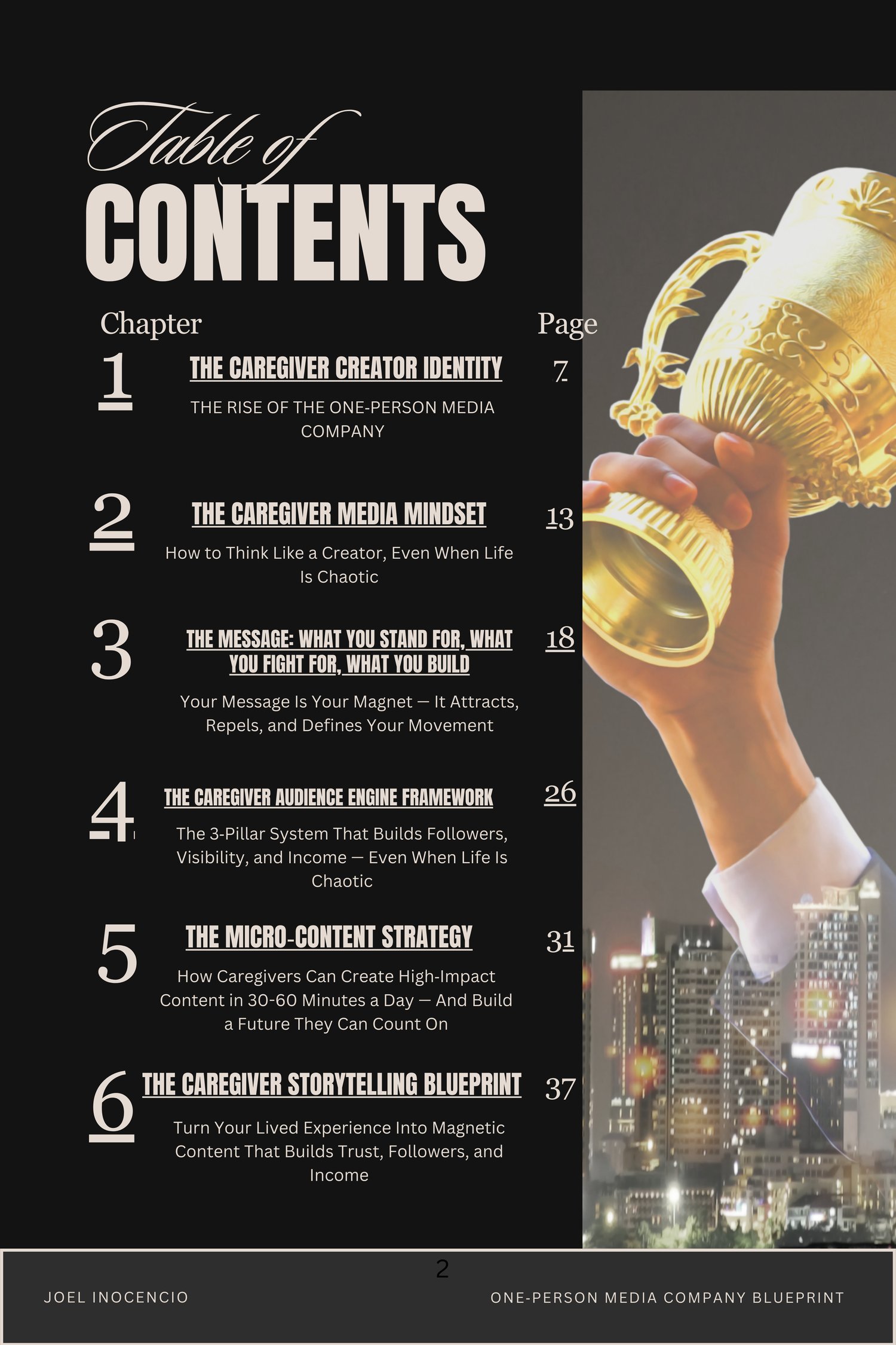 The Caregiver’s One‑Person Media Company Blueprint is a powerful, step‑by‑step guide that shows family caregivers how to build influence, visibility, and income — even with limited time, energy, or resources.