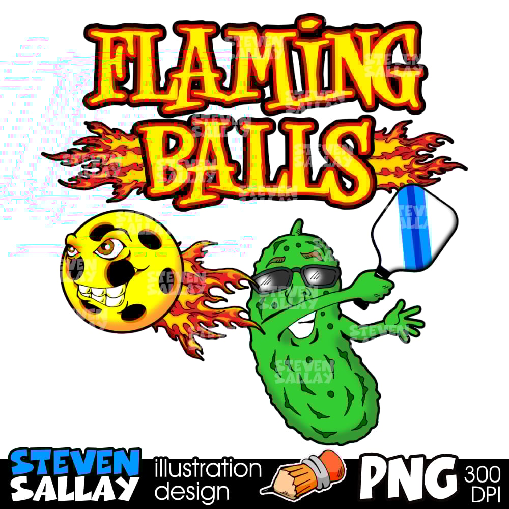 Funny Pickleball Cartoon Clipart – Flaming Balls Team Logo PNG Illustration | Digital Download
