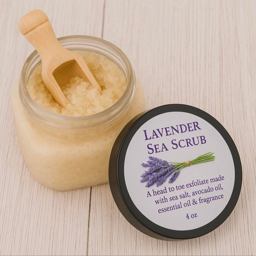 Fine sea salt does the quiet work, lifting away what’s been carried too long. Avocado oil follows, softening and restoring without leaving weight behind. Lavender settles over it all, calm and familiar, turning an ordinary wash into something slower and more deliberate.