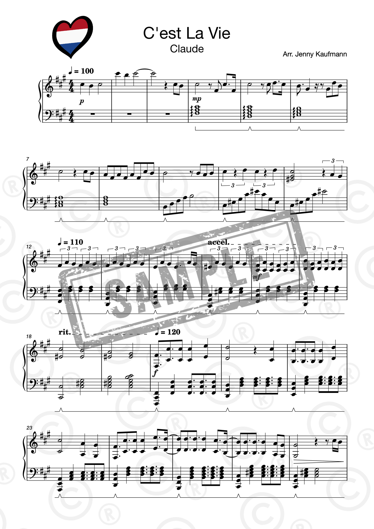 Piano sheet music and midi – C'est La Vie by Claude