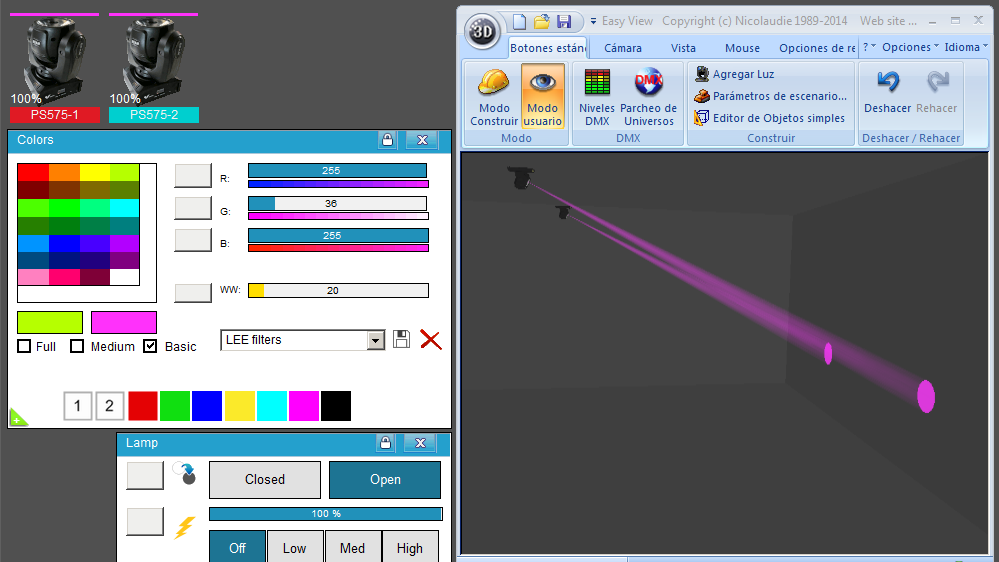 Esta Librería SSL2 está optimizada para trabajar con Magic 3d Easy View. Es decir para ver una representación 3D de las secuencias que estemos realizando con Freestyler, QLC+ o cualquier otro soft que se conecte con Magic 3d.