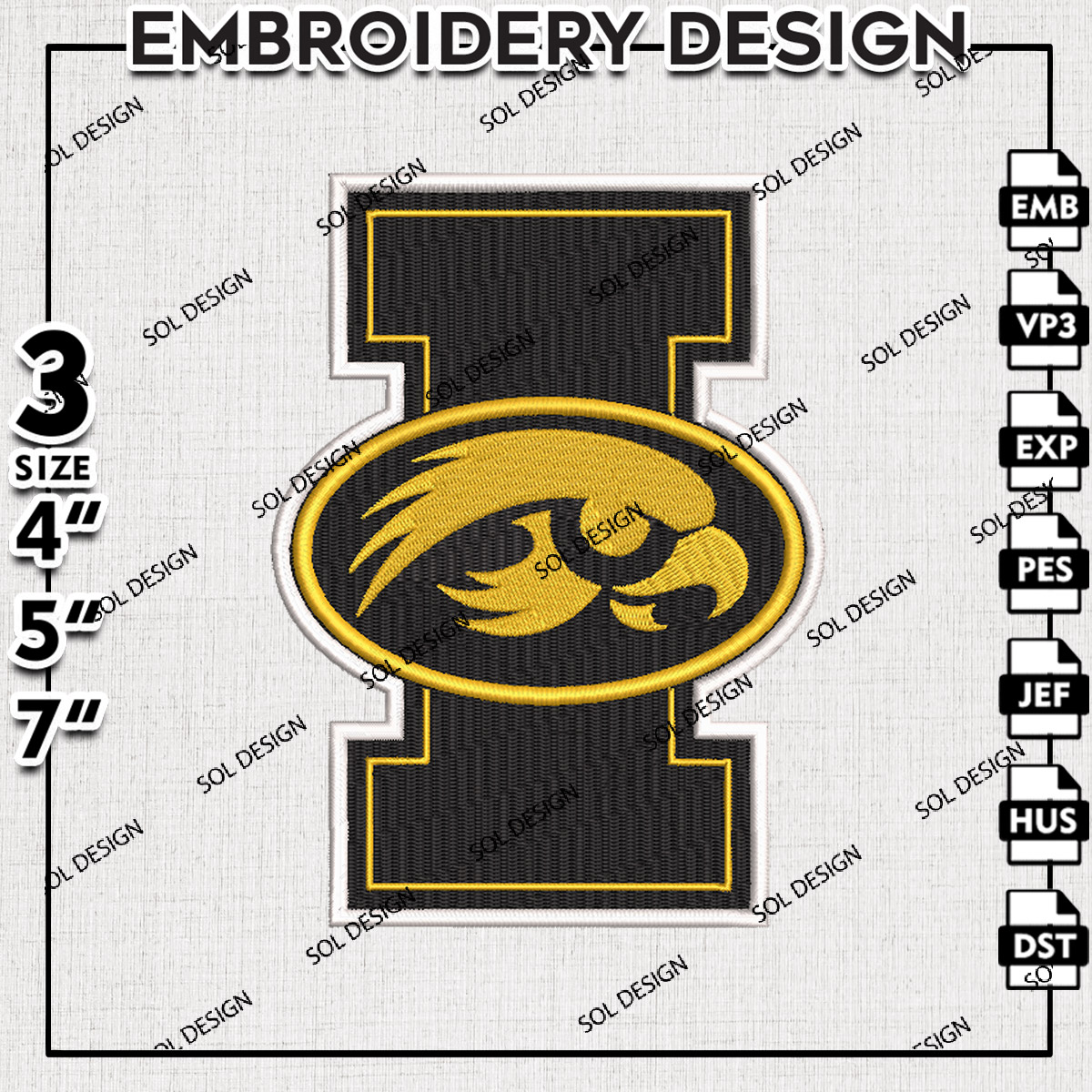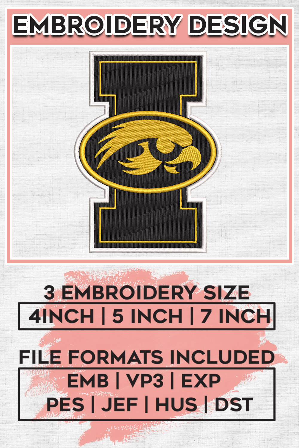 Iowa Hawkeyes NCAA College Football Team I Letter Mascot Logo Embroidery Files, NCAA Iowa Hawkeyes Team Embroidery, NCAA College Football Teams, Iowa Team Emroidery, 3 sizes, Machine embroidery designs, Digital Down
