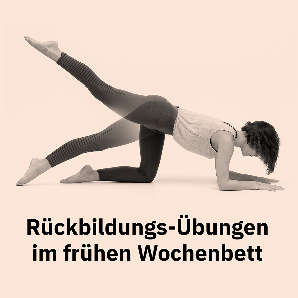 Illustrierte Anleitung mit zwölf praktischen und sanften Rückbildungsübungen zum Zuhause machen. Optimiert für die Ansicht auf deinem Handy.