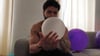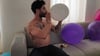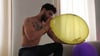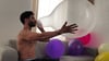 In this video I ask him to blow balloons. And if he can to blow to pop them.