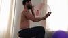 He blow 4 balloons and 3 of them are blow to pop. He burst the second balloon with his hands.