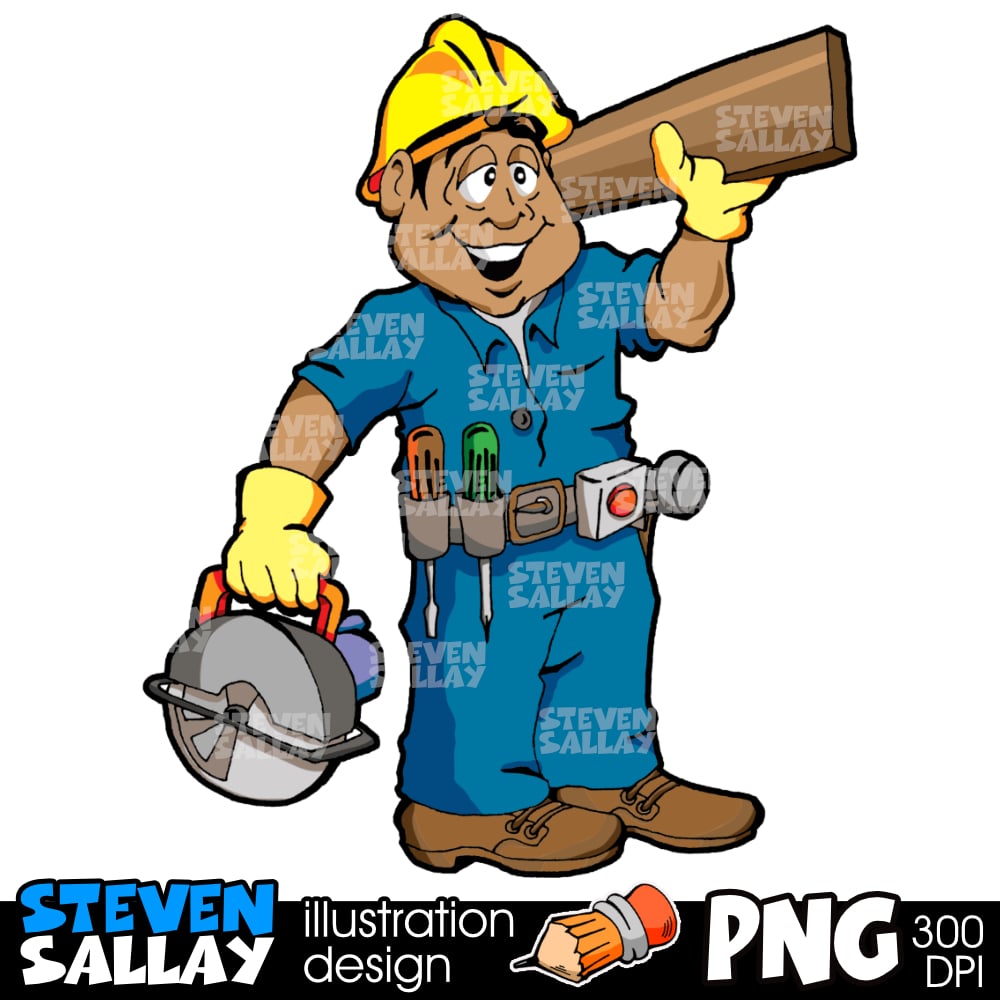Cartoon Carpenter Clipart: Ethnic Woodworker Illustration | Construction Trade | Commercial Use | Digital Download PNG.