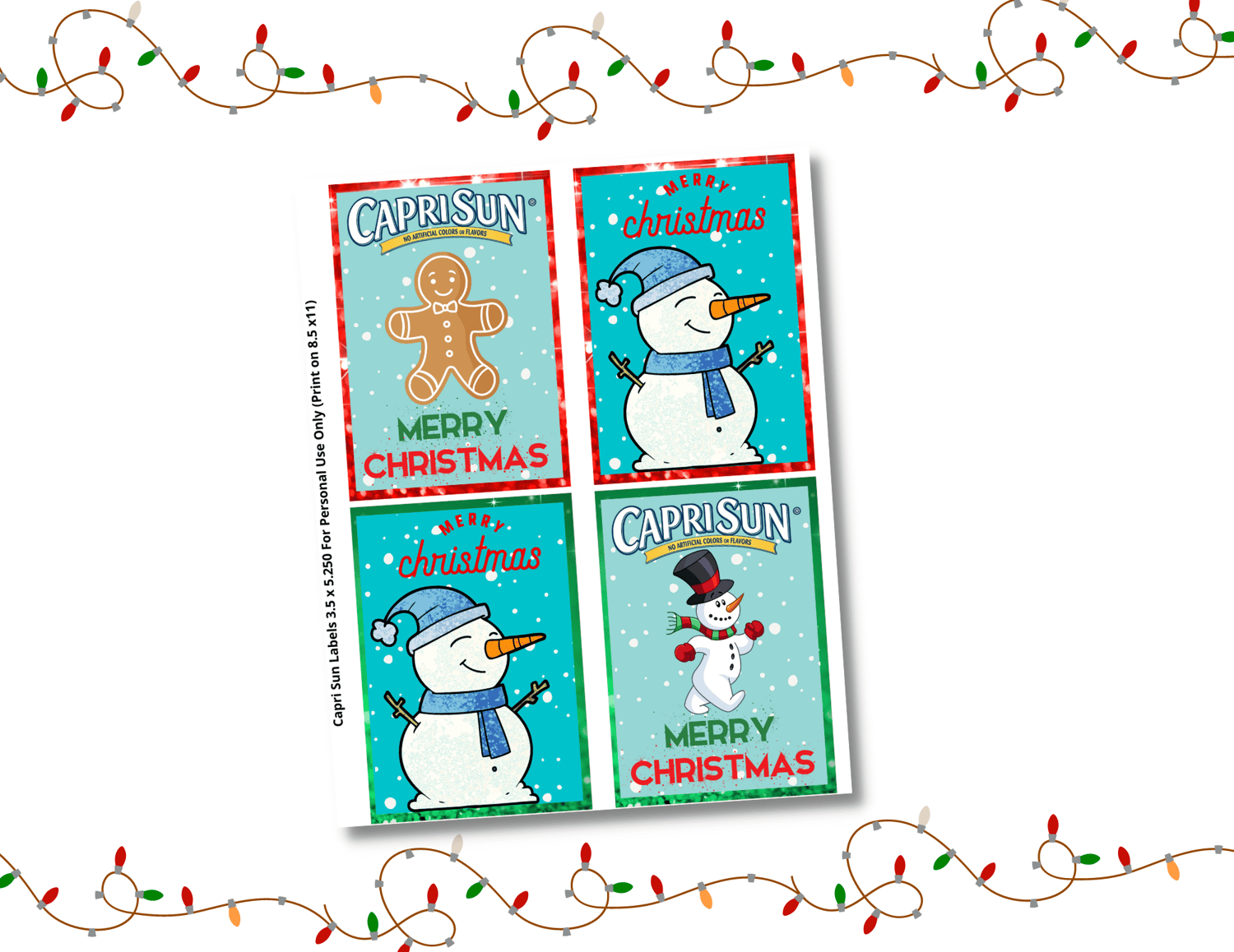 Santa Claus Capri Sun , Merry Christmas Party ,Christmas Label ,Treats Christmas ,Supplies Winter, Capri Sun Christmas ,Treats Label