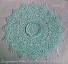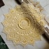 Pattern consists of 45 rounds and measures 21 inches, used around 500 yards of size 20 mercerised cotton thread with 1.75 mm steel hook.
