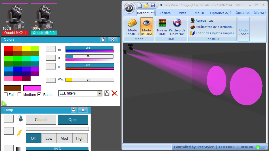 Esta Librería SSL2 está optimizada para trabajar con Magic 3d Easy View. Es decir para ver una representación 3D de las secuencias que estemos realizando con Freestyler, QLC+ o cualquier otro soft que se conecte con Magic 3d.
