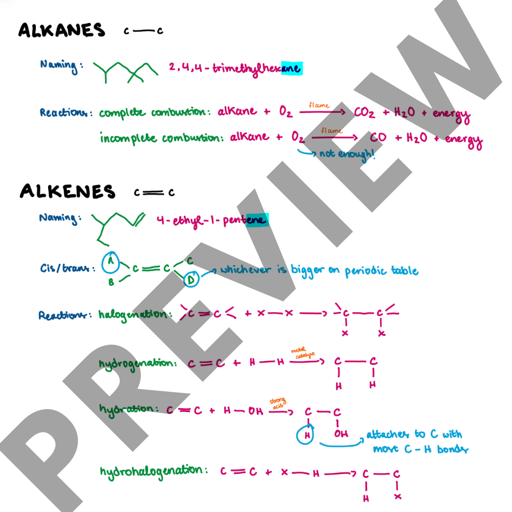 Study material for Exam 2. Visual description of each functional group, including alkanes, alkenes, alkynes, alcohols, thiols, etc.