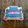 Book Stack with all Lilith Leana's Monster Genres in a Colored Cut Out Plastic Sticker.
