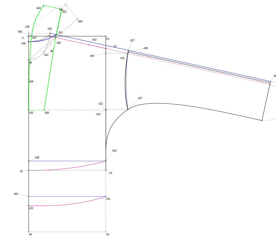 PATRÓN BASE DE PRENDAS CON MANGA MURCIÉLAGO con cuello, archivo con patrón editable