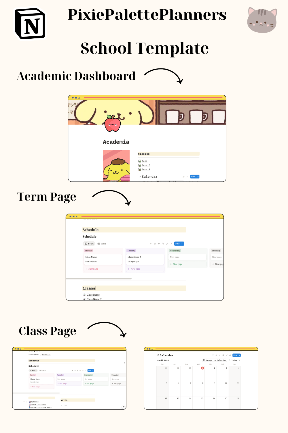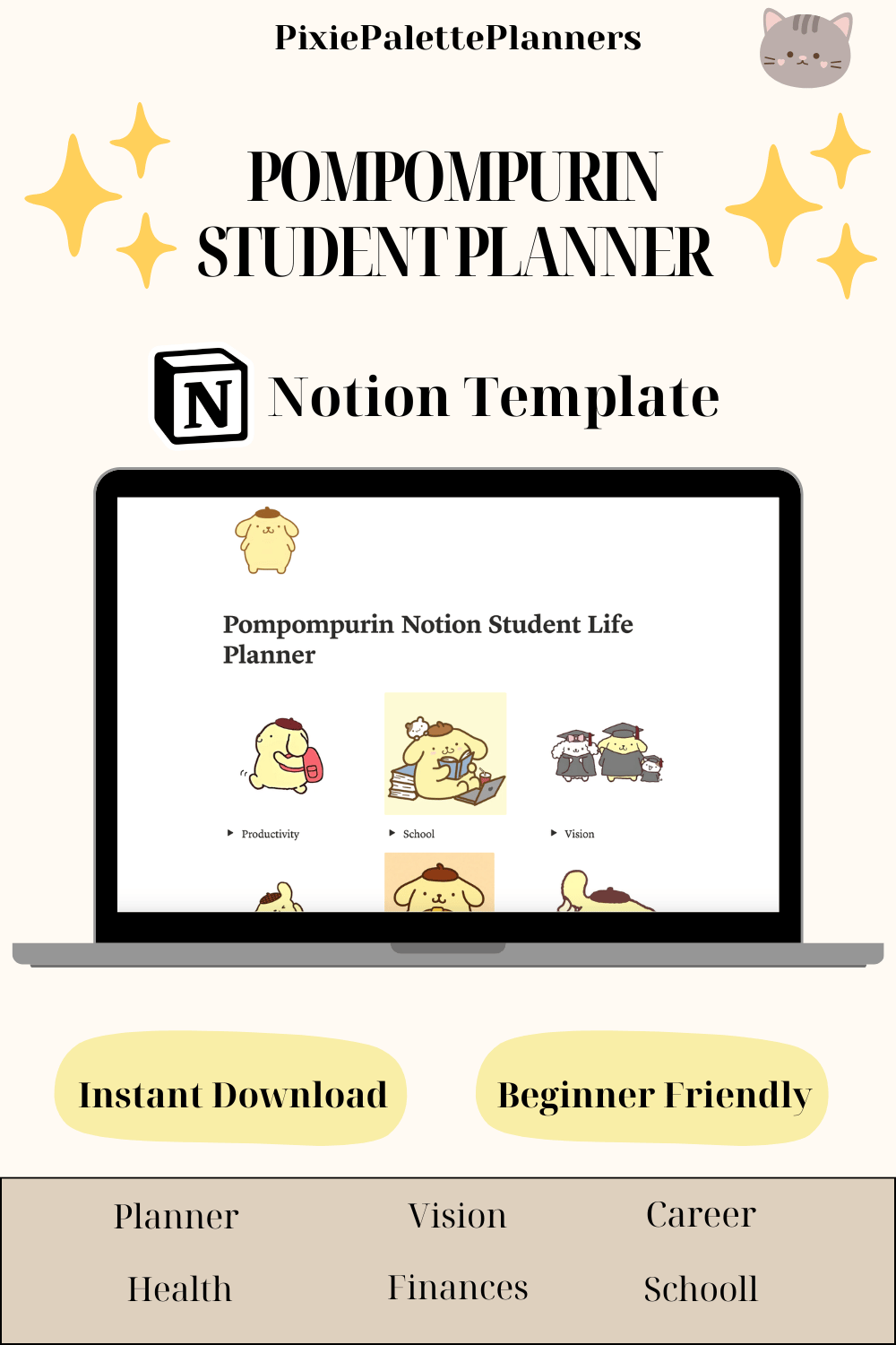 Pompompurin Notion Template | Cozy Aesthetic Academic Planner, Student Dashboard, Kawaii Sanrio Planner, College Planner, Assignment Tracker, Notion Digital Planner