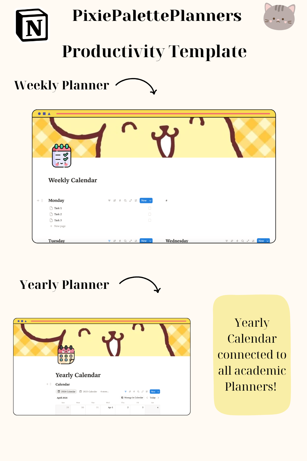 This Notion digital planner works seamlessly on your laptop, desktop, tablet, and phone — so your kawaii academic planner goes wherever you do!
