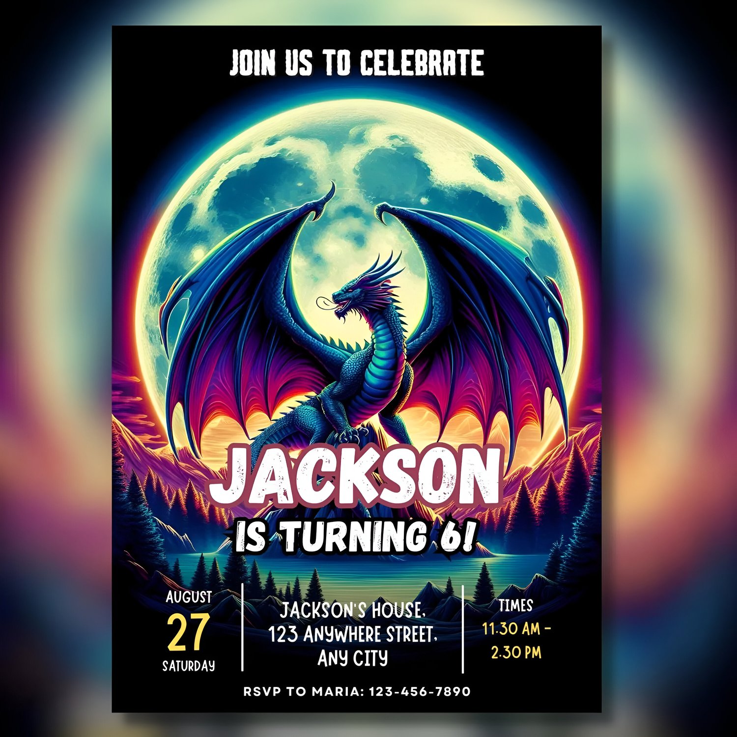 Editable Realistic Dragon Birthday Party Invitation Card, Editable Template, Gothic Birthday Invitation, Jurassic Birthday Mobile Evite