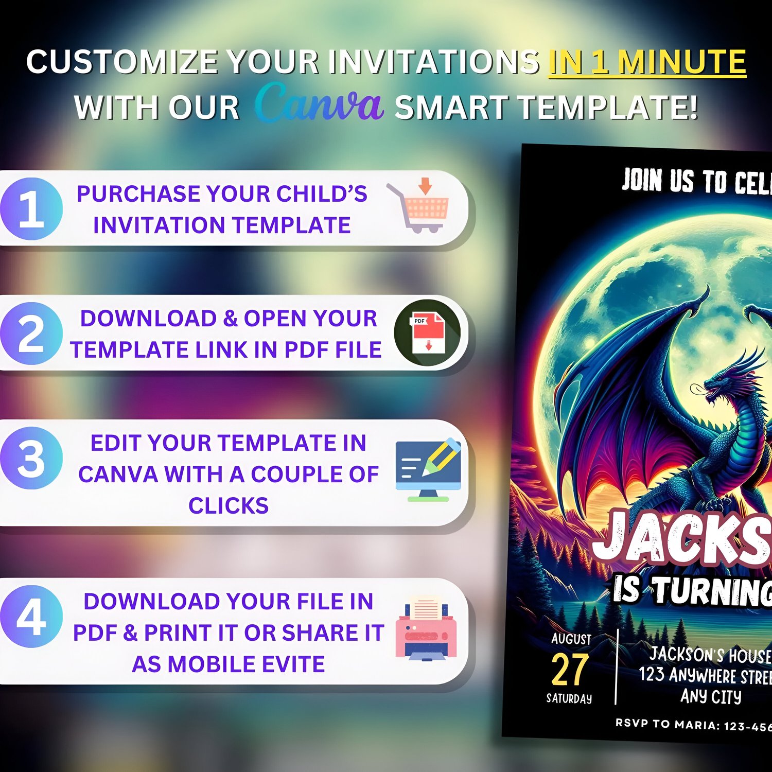 Customize your invitation using Canva.